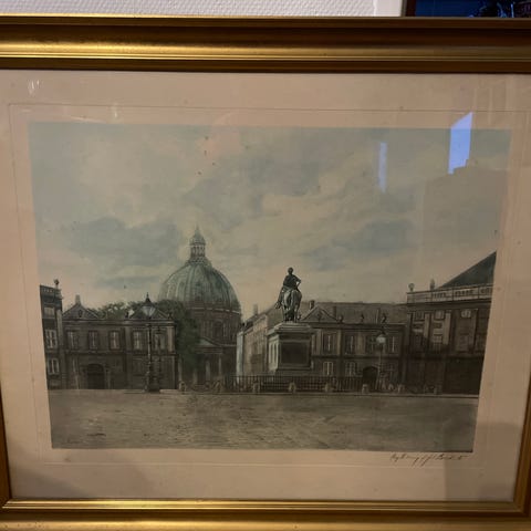 Andet, Gustav Holgersen, motiv: Andet, Ma 007 - Hånddekoreret tryk af Den Kampmanske Gård i Varde udført af Gustav Holgersen - 43x30 cm pris