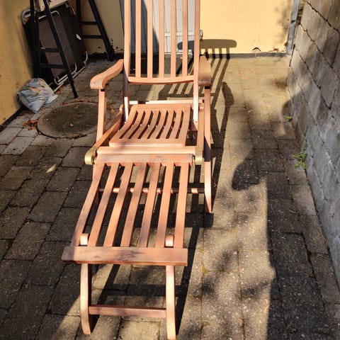Dækstol, teaktræ, incl. hynde. Kan klappes sammen.