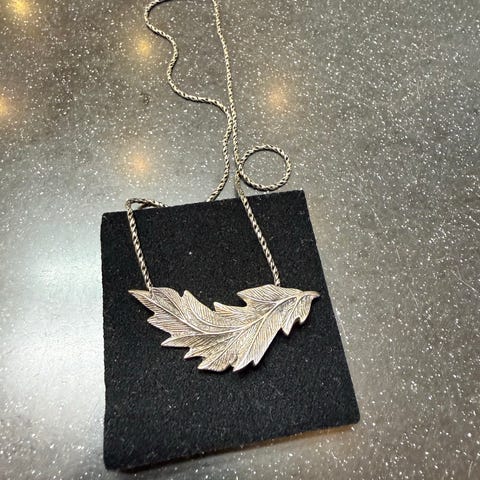 Fin sølv kæde med et fint formet drejet metal smykke med volume
