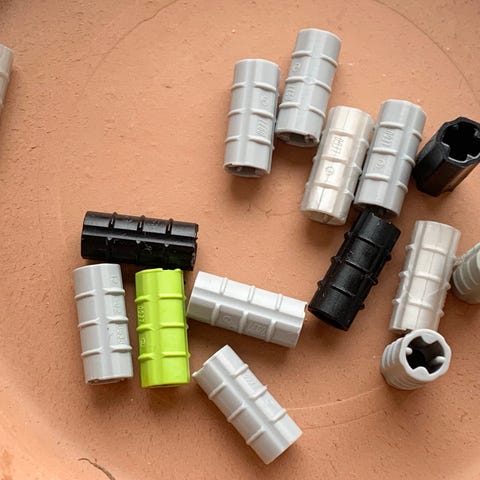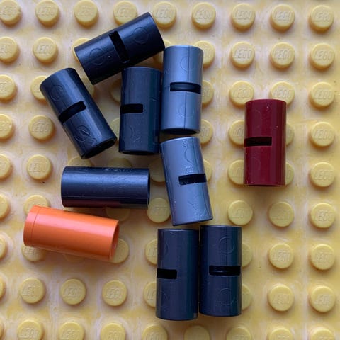 Orange LEGO Technic pin connectors - varianten uden slids. Fin stand 🧡
