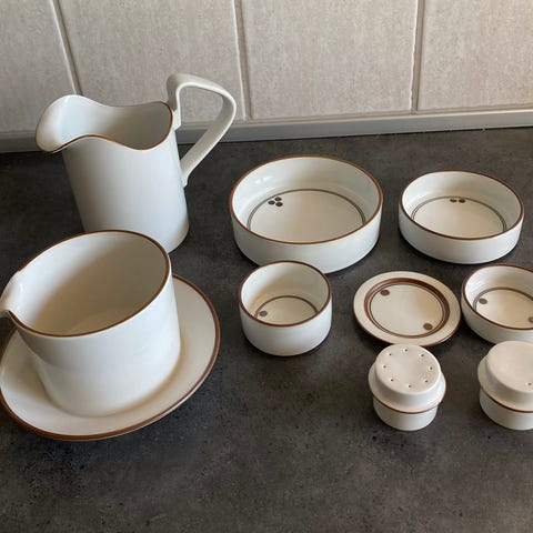 Royal Copenhagen Domino sovseskål med underkop i porcelæn. Produktet har en hvid base med en enkel sort kantdetalje. Velegnet til servering af sovs og saucer.