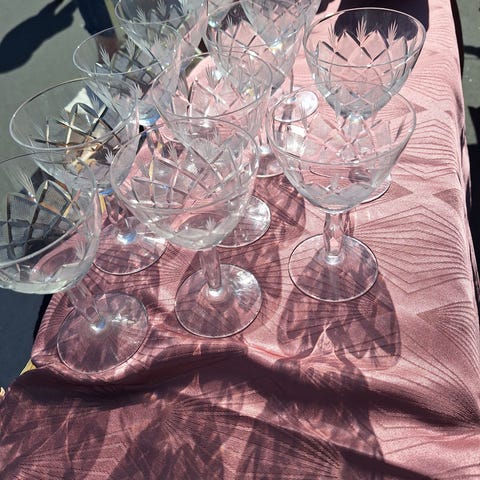 9 rødvinsglas fra lyngby glas - Wien antik. Glassene måler 13 cm høj. Alle glas er uden skår.