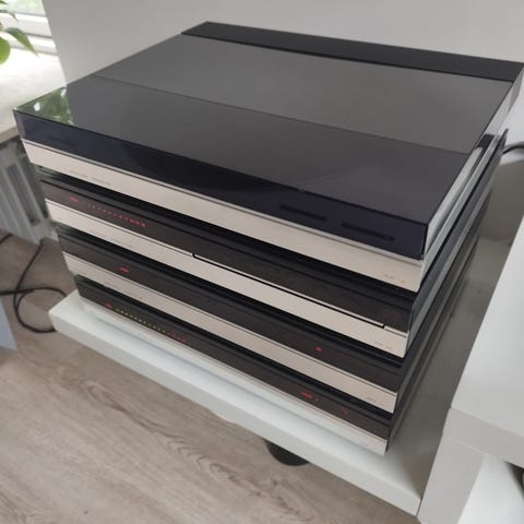 Har dette her rimelige fine b og o anlæg til salg.det er et jeg har fået fra et dødsbo men da jeg ikke selv laver b og o sælges det som defekt. Jeg har selv prøvet det og ja det kan godt spille cd men pladespiller skal have en ny pickup og så slukker den lille lampe ikke når pladen er færdig cd-afspiller spiller men har ikke prøvet mere på den forstærkeren spiller også. Fjernbetjening har der siddet 3 syret batterier så den har det heller ikke godt men jeg har set at når de står flot og fejlfrit sælges de til mellem 12-15000 kr
