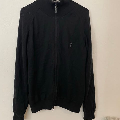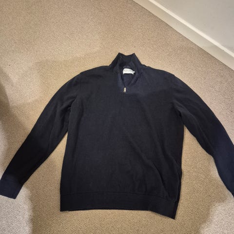 Mørkeblå sweater med lynlås foran