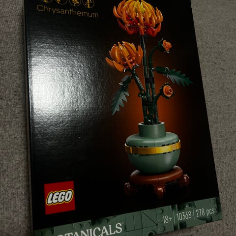 LEGO Botanical Collection Chrysanthemum blomstermodel med detaljeret design og 278 dele. Modellen forestiller en krysantemum blomst i en dekorativ potte, egnet til samling eller dekoration.