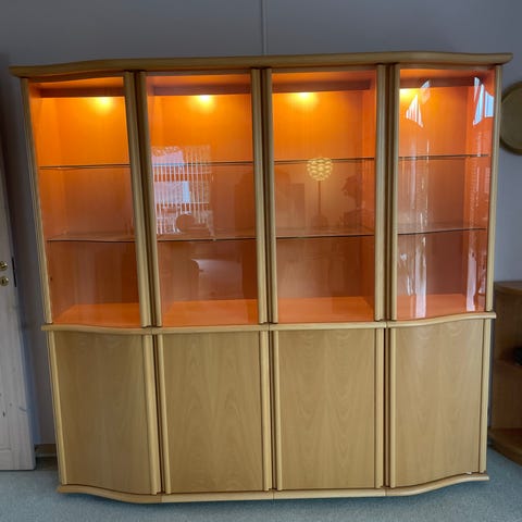 Skovby vitrineskab med kliklåge og indbygget lys.