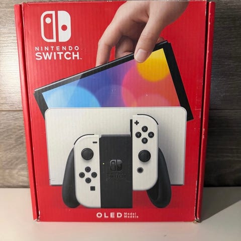 Inkluderer ikke HDMI kabel og straps til Joy Con.