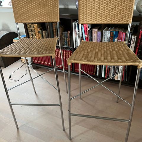 Super flotte barstole med sæde og ryg i flet og stel i krom.