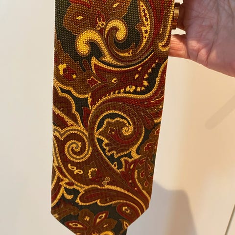 Fremstillet i 100% silke. Bredeste sted: 7,5 cm.
