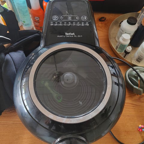 Varmluft Frituregryde/ maskine. Rigtig god stand. Grillkurv medfølger. Brugt i to år og ingen fejl.
