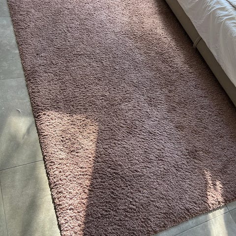 IKEA tæppe med mønster af blå og grønne blade. Tæppet har et dekorativt design med forskellige nuancer af blå og grøn, velegnet til brug som gulvbelægning eller dekorativt element i hjemmet.