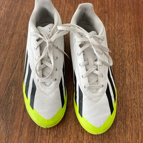 'Adidas Crazyfast' indendørs fodboldsko i størrelse 42 2/3. Skoene er hvide med grønne og sorte detaljer. Godt brugt, men fungerer rigtigt fint!