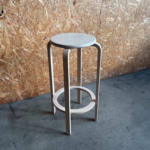 Taburetten har en lille rød streg allernederst på et af benene (se det sidste billede). Er ikke forsøgt slebet væk.