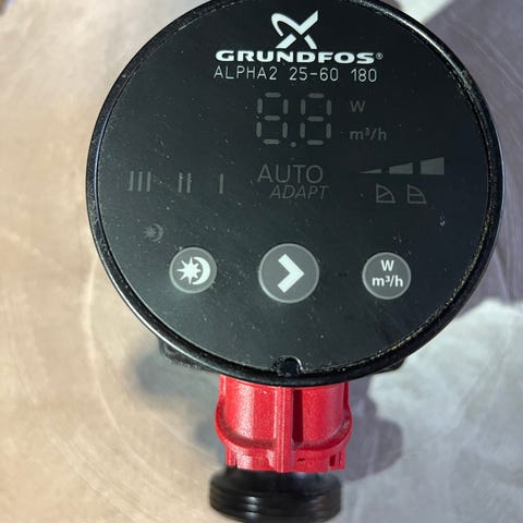 Grundfos ALPHA2 15-60 130 cirkulationspumpe med digital display og automatisk justering. Pumpen er designet til opvarmningssystemer og har energieffektive funktioner.