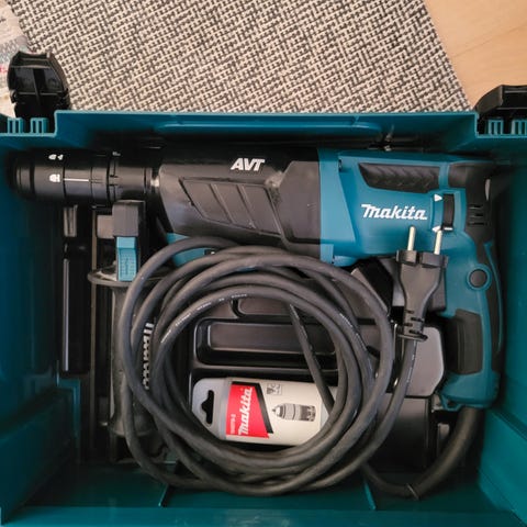Makita BHR202 Akku borehammer i blå farve. Værktøjet er batteridrevet og egnet til bore- og hamreopgaver.