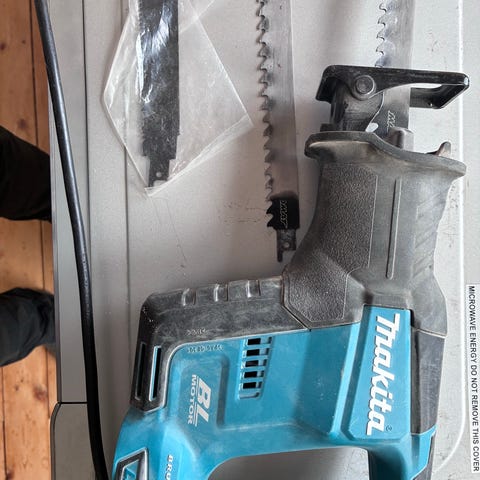 Makita DJV182Z bajonet sav med kompakt design og ergonomisk greb. Batteridrevet værktøj egnet til præcisionsskæring i forskellige materialer.