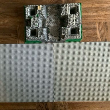 5 x forskellige LEGO plader i stor og mellemstor størrelse. Alle i fin stand - dog et lille hak på den ene grå plade 🩶