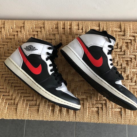 Nike Air Jordan 1 Mid sneakers hvid, grå, sort, herre, str. 44