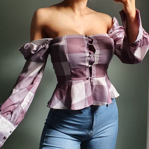 Helt ny grå bluse str 40 med pynt på ærmerne