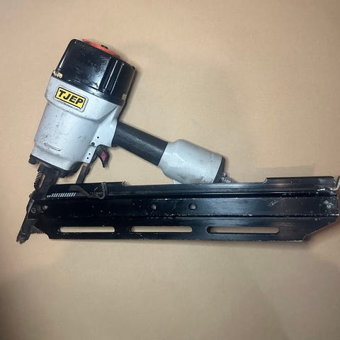 TJEP 34/100S sømpistol med tilhørende kuffert. Værktøjet er designet til professionelt brug og leveres komplet i en robust opbevaringskuffert.