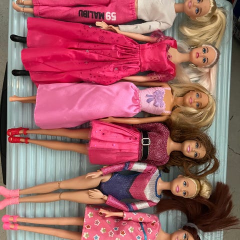 Barbie dukker i forskellige udgaver og med forskelligt tøj og tilbehør.