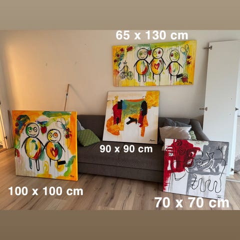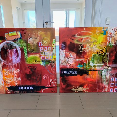 2 malerier fra Malerifabrikken.dk. Malerierne har 2 sølvrammer, men kan også ophænges uden rammer.