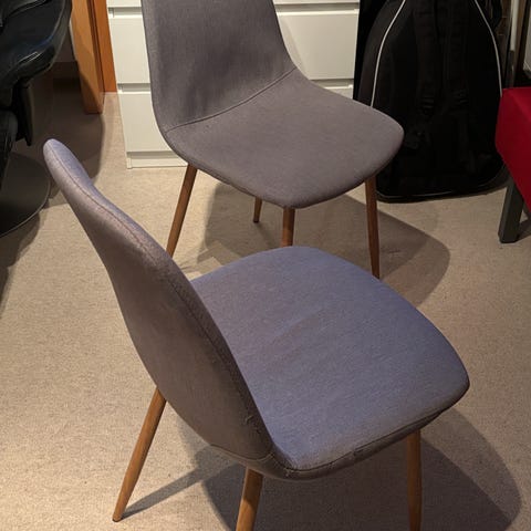 Skalstole 4 stk. den ene skal fikses - skal blot have skruet golfere til ben på plads
