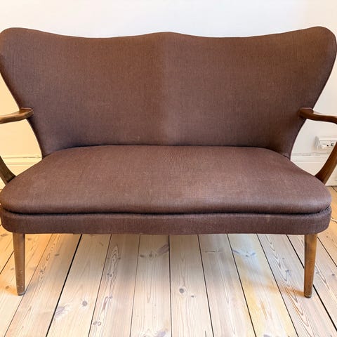 Lignende model kan ses her: https://faiblefurnishings.com/archive/teak-2-seater-sofa-juul-kristensen/