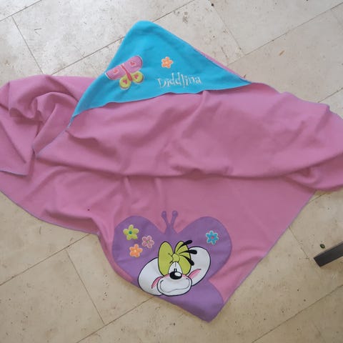 Diddl, hyggetæppe (fleecetæppe, ca 150x150 cm, med 'hætte' så man rigtig kan putte sig i det :-). Fin stand, ingen pletter