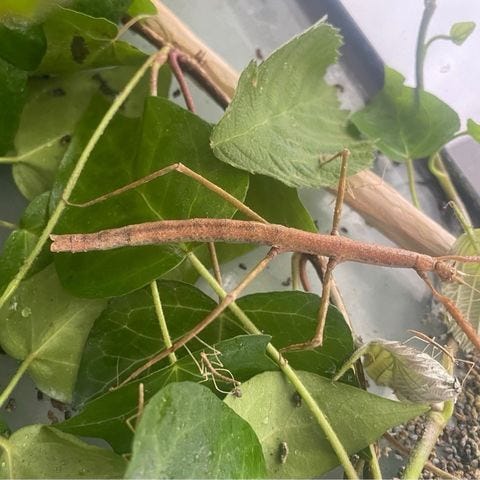Jeg giver nogle vandrende pinde-nymfer gratis væk. Arten hedder Medauroidea Extradentata og er kendt for at være et af de absolut nemmeste dyr at holde. De bliver omkring et år gamle og er rolige, stille og fascinerende at følge i hverdagen.