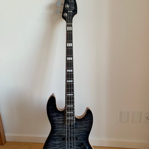 mahogany (Toona sureni) body, maple neck, c-profile, rosewood (Dalbergia Latifolia) fretboard, scale length 864 mm, 20 medium small frets, nut width 45 mm, 2x Marcus Standard Jazz Bass J-Revolution pickups, Marcus Heritage-3 electronics with frequency control, volume/tone (dual pot), pickup blender, treble, middle/middle frequency (dual pot), bass mini toggle (active/passive), finish black.