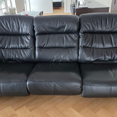 Lædersofa 2+3 pers. Hjort Knudsen, sort lædersofa, som er meget velholdte og flot stand, uden hakker huller og ridser sælges andet køb af sofa. Nypris ca. 25.000 Kr