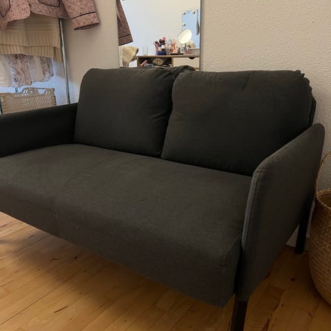 Jeg sælger min Ikea sofa til 400kr, den er lige blevet renset af en tæpperenser så den ser ud som ny 😀