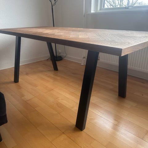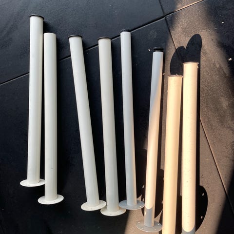 Hvide ben til spisebord. Købt i Bauhaus. De trænger til en klud.