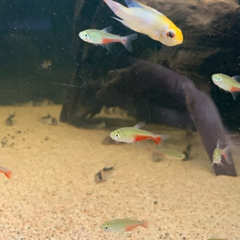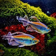 En smuk og livlig stimefisk med karakteristisk rød snude og stribet hale. Rødnæse tetra er fredelig, nem at holde og perfekt til selskabsakvarier. Den trives bedst i større stimer, hvor den viser flot svømmeadfærd og intense farver. Ideel til både nybegyndere og erfarne akvarister. 🐟