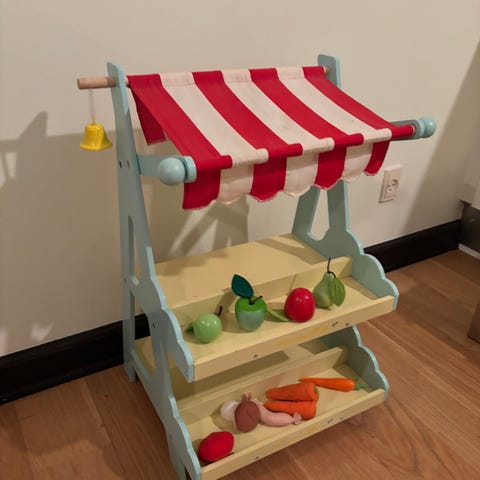 Flot og velholdt Le Toy Van Te & Godter Markedsbod fra Le Toy Van sælges. En skøn markedsbod i træ, der indbyder til timevis af rolleleg som butik, café eller tehus.