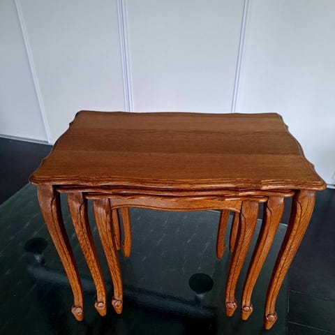 Lampebord I eg, med tilhørende skuffe; bærer præg af vintage men er i rigtig god stand.