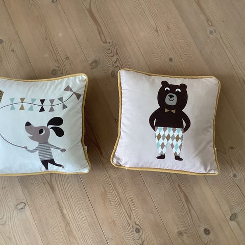 Jeg sælger disse super flotte puder fra fem Living i grå med en bordeaux farvet stribe og guldfarvet lynlås. De fungerer super godt som sengepudder til hvis man vil sidde oprejst og fx læse eller bare til pynt.
