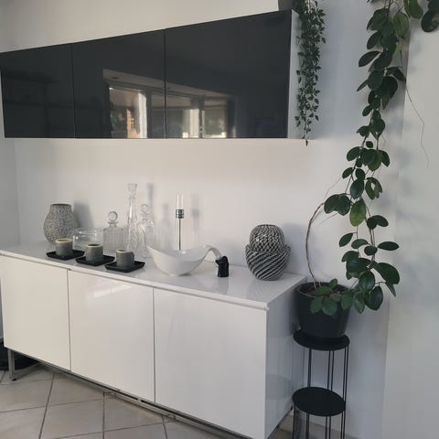 Vitrineskabe med lys i + skænk/skabe for kun 600kr. Skal dog afmonteres og bæres
