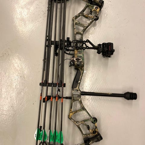 Vil hellere have en compound bue, så sælger denne fine bue. Der medfølger diverse pile og strenge + et ekstra sæt helt nye wns black elk Ilf bueben på 35#