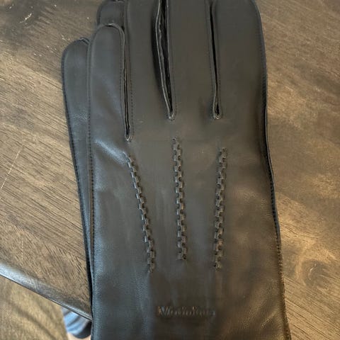 Helt nye mørkebrune læderhandsker med uldfoer. Flotte fletdetaljer foran. Præget Matinique-logo i skindet. Str 10. Fra dyre og røgfrit hjem. Prøvet på / aldrig brugt