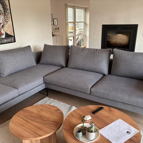 Fed chaiselong sofa fra Ilva af mærket Land, designet af SaysWho. Farven er meleret denimblå - fås ikke længere. Den er 4 år gammel, primært brugt af 1 person, velholdt, ingen små børn, ikke ryger hjem. Der er en enkelt lille plet, se billede, men den forsvinder stort set i meleringen. Prisen sat efter stand. (Den på Ilva-billedet er en mørkere blå.) Købspris 12999.