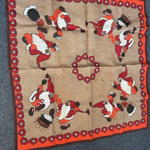 Meget flot ubrugt tæppe ø 125 cm. Jutekvalitet kantet med bred rød kant.