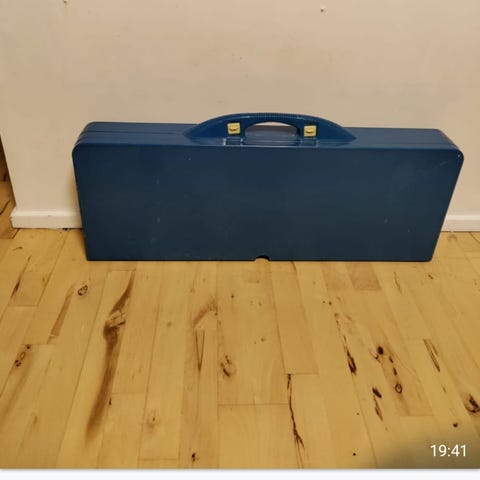 Retro picknickbord 84 x 84 cm. fra 60'erne med tilhørende 4 stole. Sammenklappelig til kuffert. Tilbehør til veteranbil. God stand.