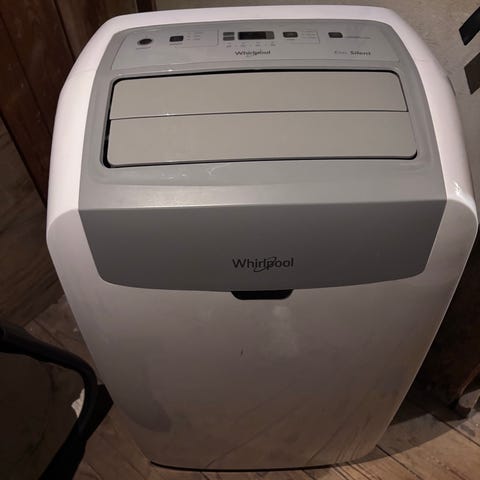 Whirlpool Eco Silent airconditioner med fjernbetjening. Enheden er hvid og designet til at give køling i rum. Den har en kompakt størrelse og brugervenlige kontrolfunktioner.