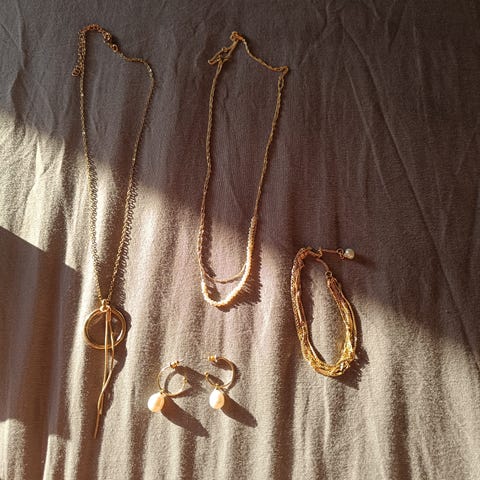 Her til julefrokosten/nytår eller en anden anledning, super flot sæt, bestående af halskæde og armbånd, hvor der er masser af bling, bling, når solens stråler, eller spot light, rammer det, er det bare såååååh flot.