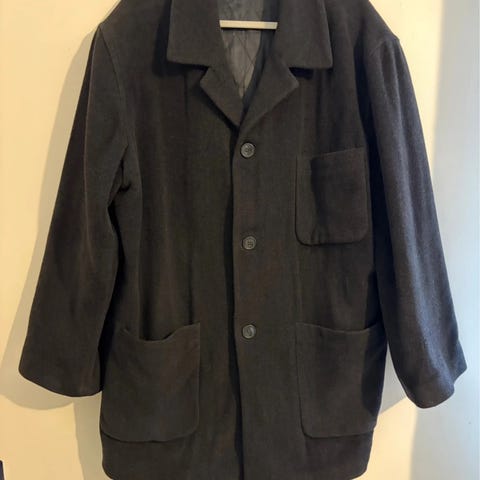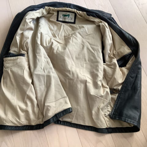 Baracuta Jakke i størrelse XL til mænd. Jakken er sort og fremstillet i læder. Den har en karakteristisk rødternet foer.
