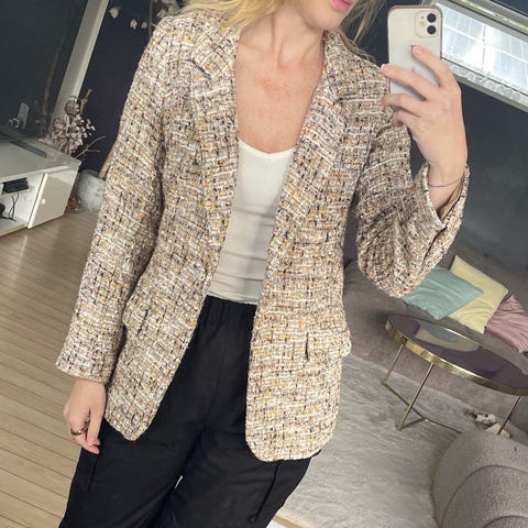 #aview #aviewcph #blazer #boucleblazer #jakke #klassiskstil #scandinavianstyle #struktur #beige #brun #zara #mango #yas #object #noella #minimalstyle #chic #tweed #vævet #multi