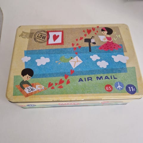 Metaldåse kagedåse, 20 cm høj i fin stand og med gennemsigtig transparent plastiklåg