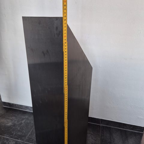 Helt ny skorsten til emhætte i mat sort. Den er skåret i smig i det ene stykke, hældningen ses på billedet.